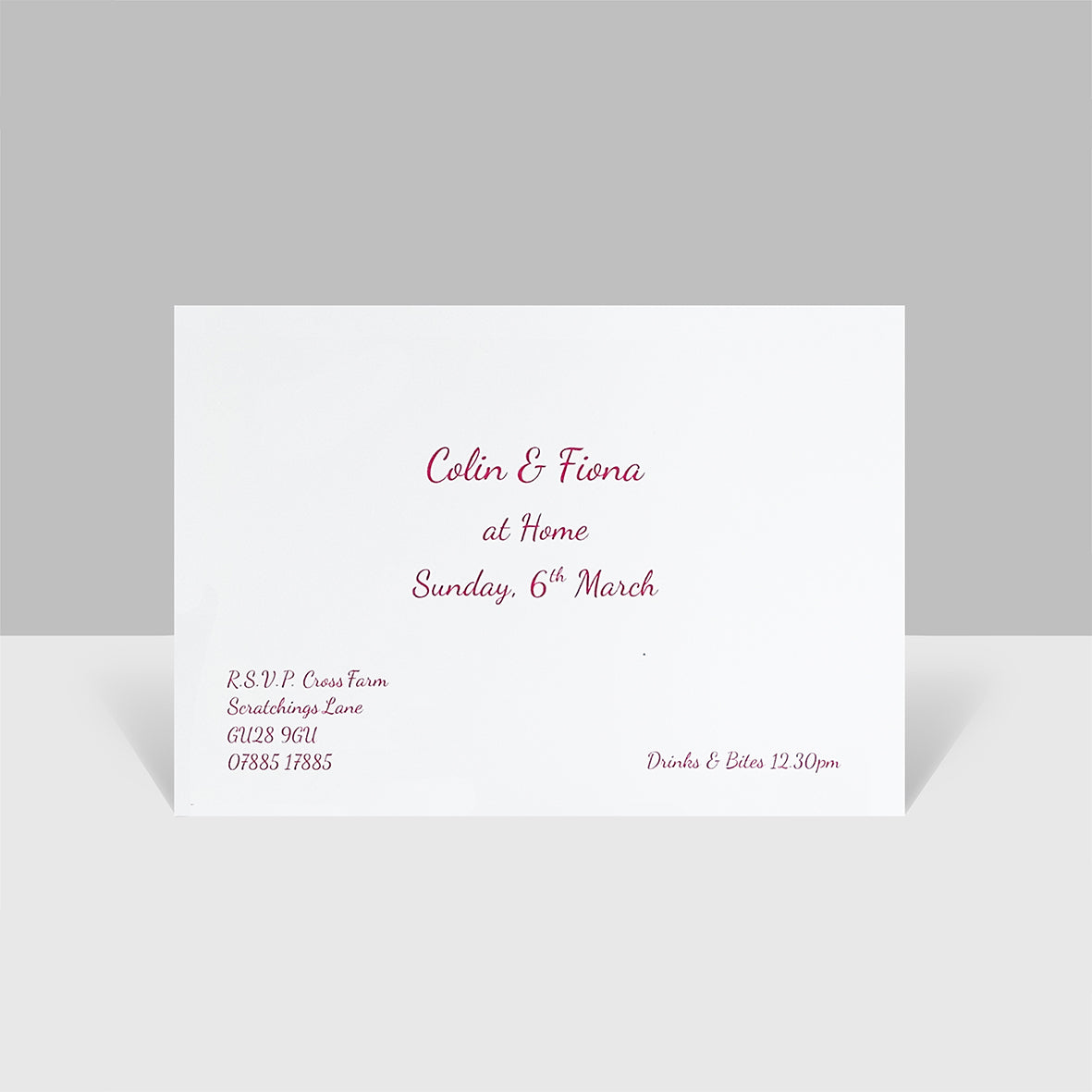 Browse the card colour, ink colour and font options to make it your own!